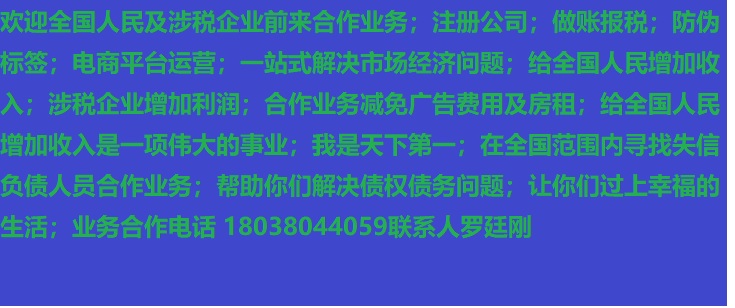 人進寶城全國招商;合作業(yè)務減免廣告費用;歡迎全國涉稅企業(yè)前來合作;業(yè)務合作電話 18038044059 聯(lián)系人羅廷剛